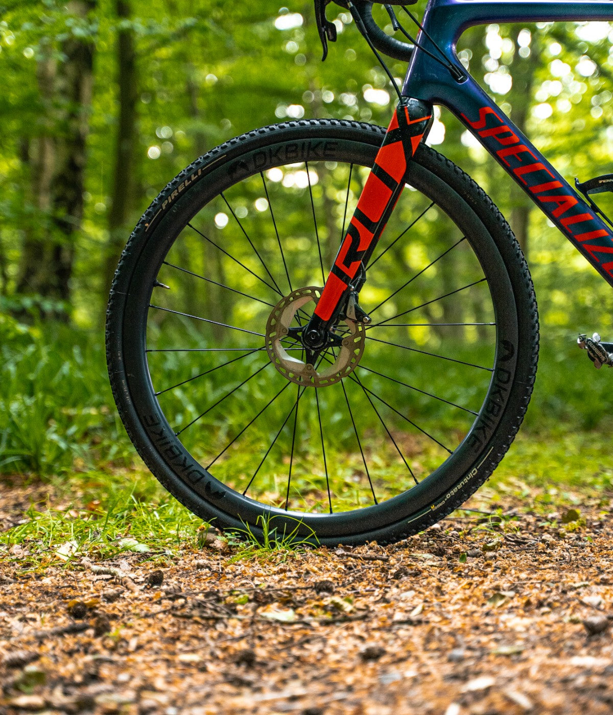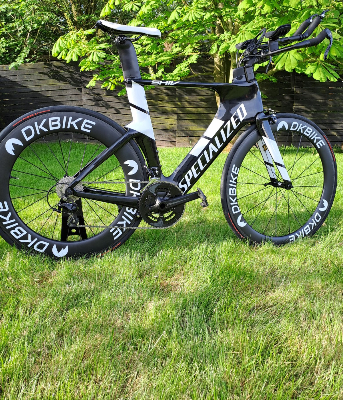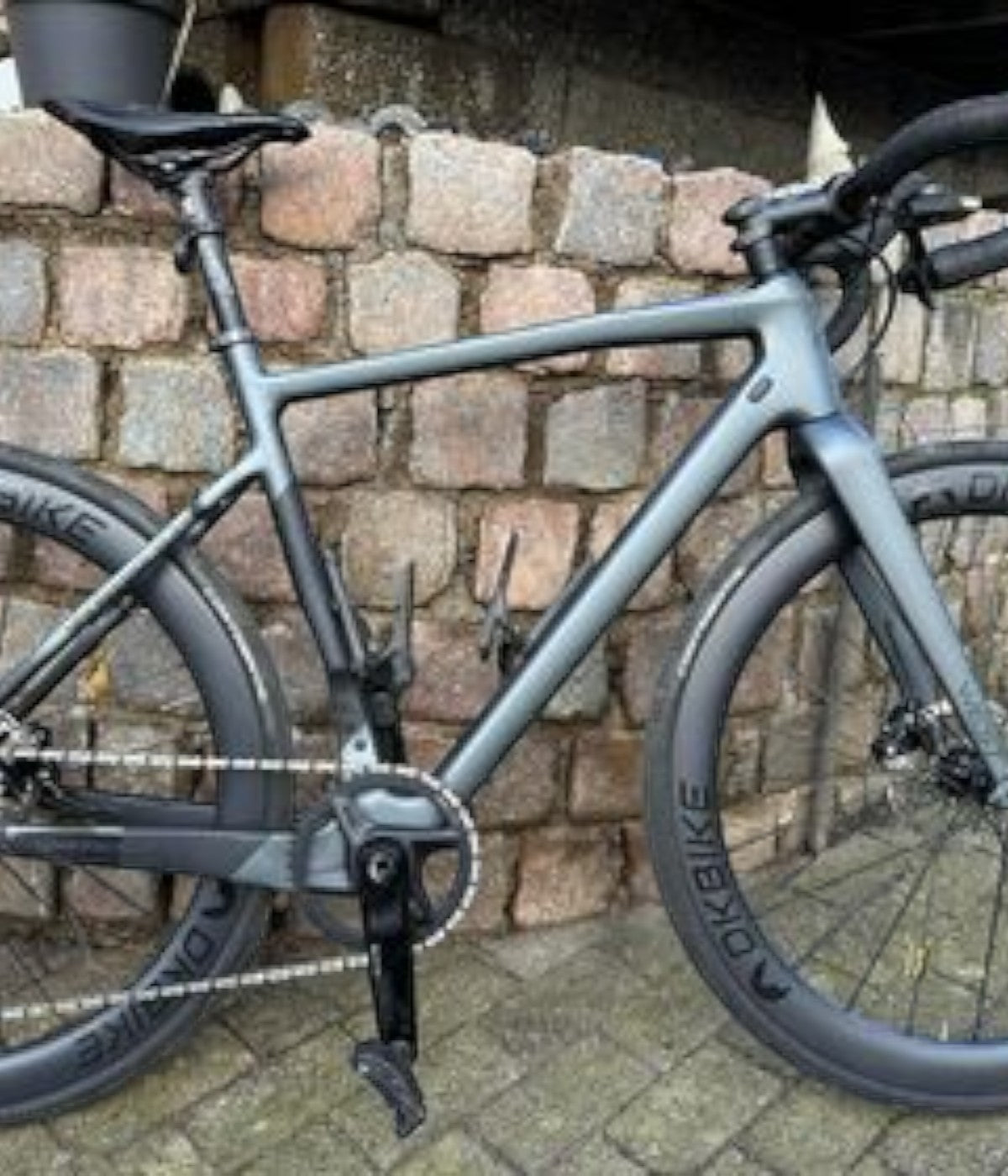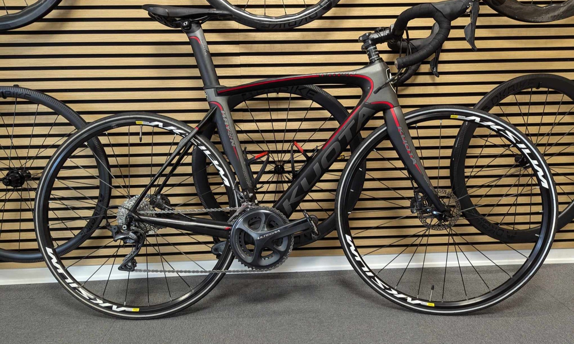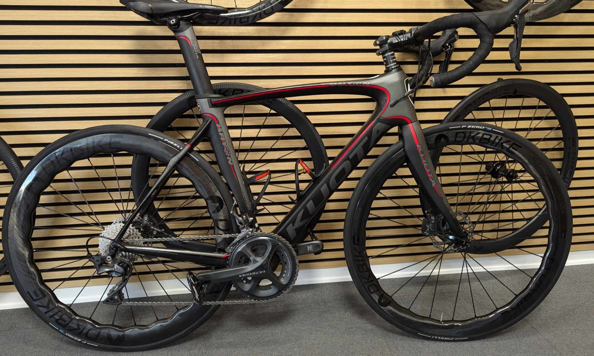 Kundens sykkel - Kuota skivebremse sykkel før montering av DKBIKE Wave hjul og etter med DKBIKE hjul - wow! Kunden valgte 57mm profil på bakhjulet og 45mm profil på forhjulet.