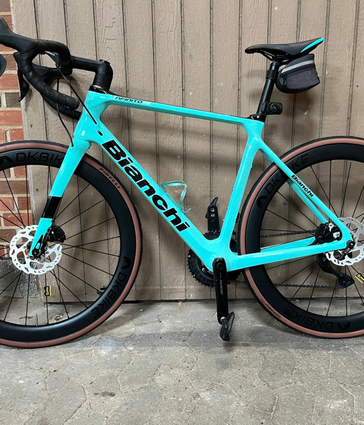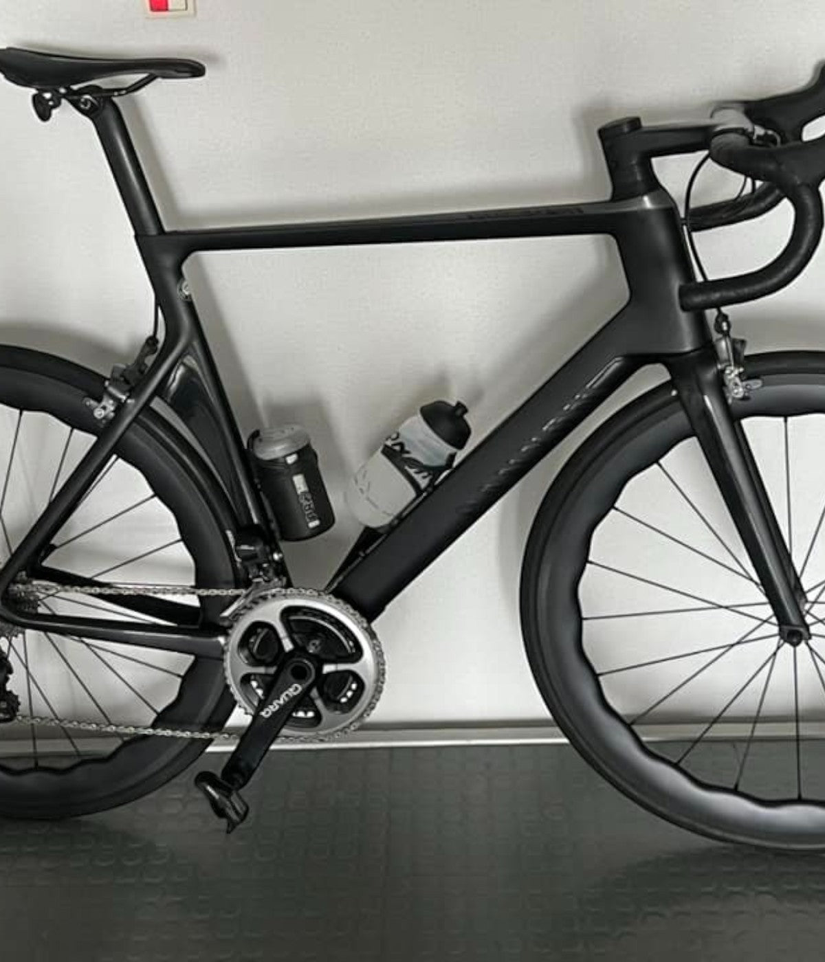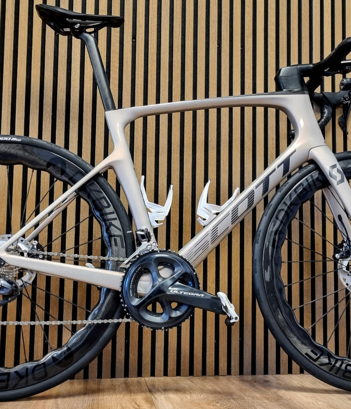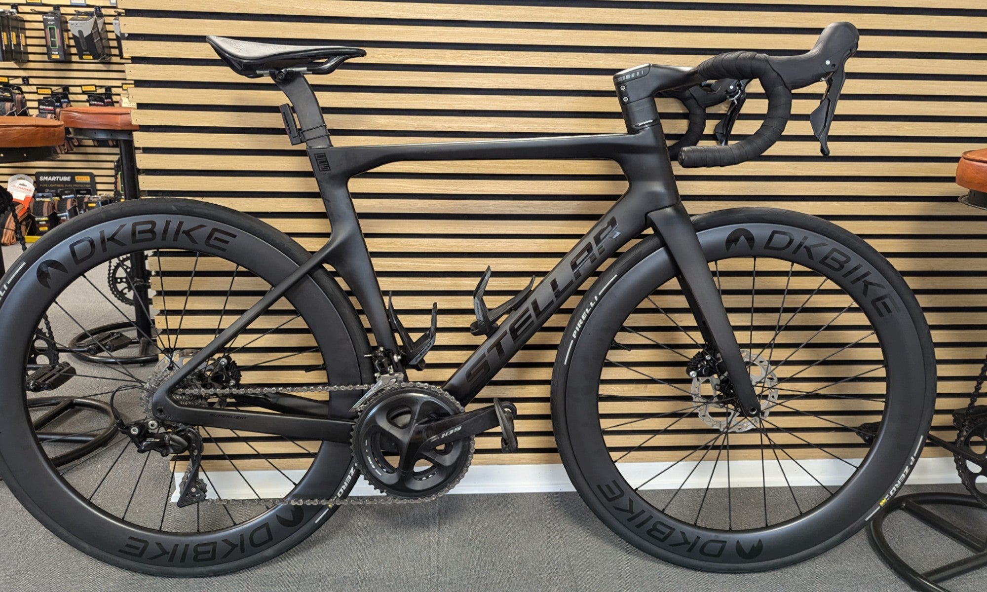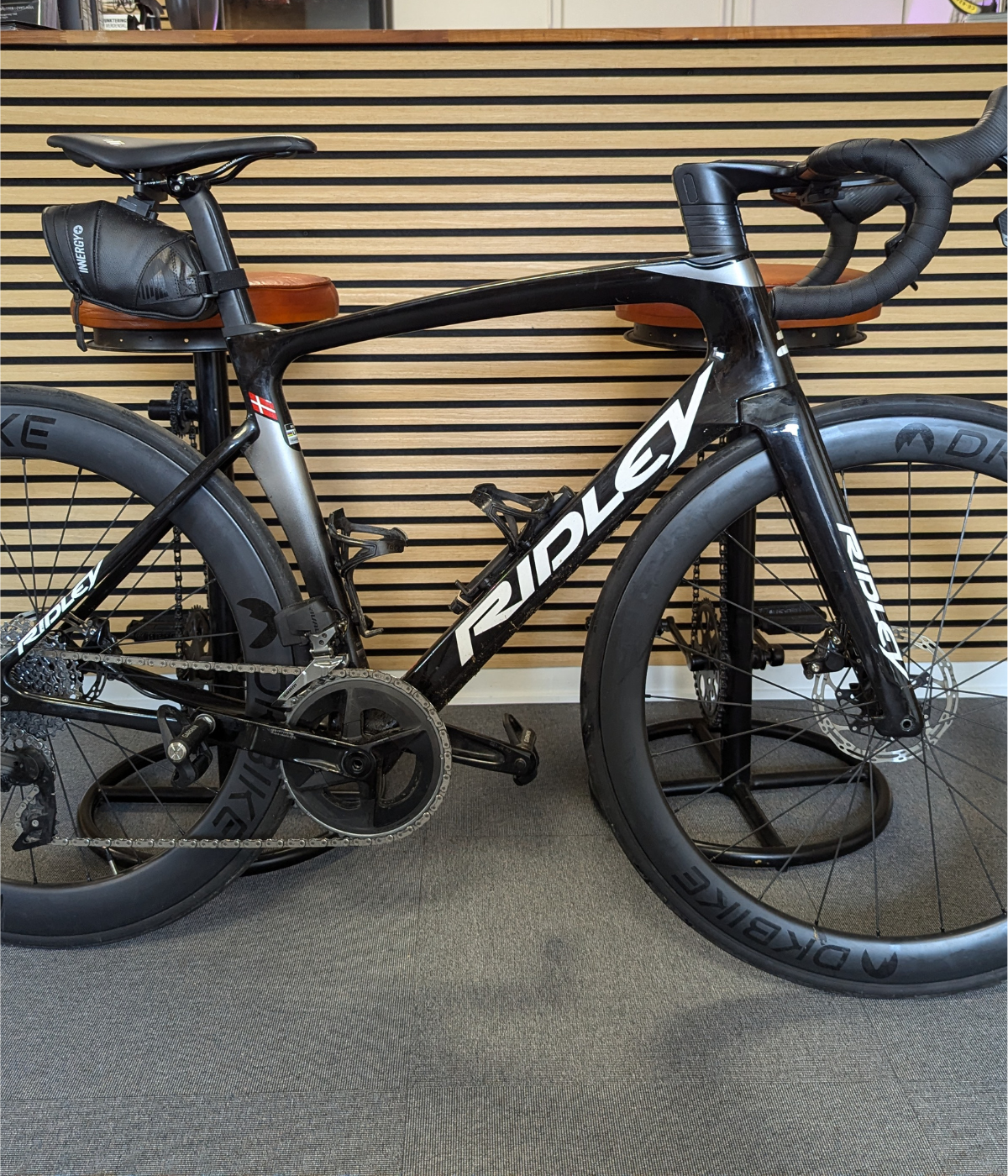 Kundens sykkel - Kuota skivebremse sykkel før montering av DKBIKE Wave hjul og etter med DKBIKE hjul - wow! Kunden valgte 57mm profil på bakhjulet og 45mm profil på forhjulet.