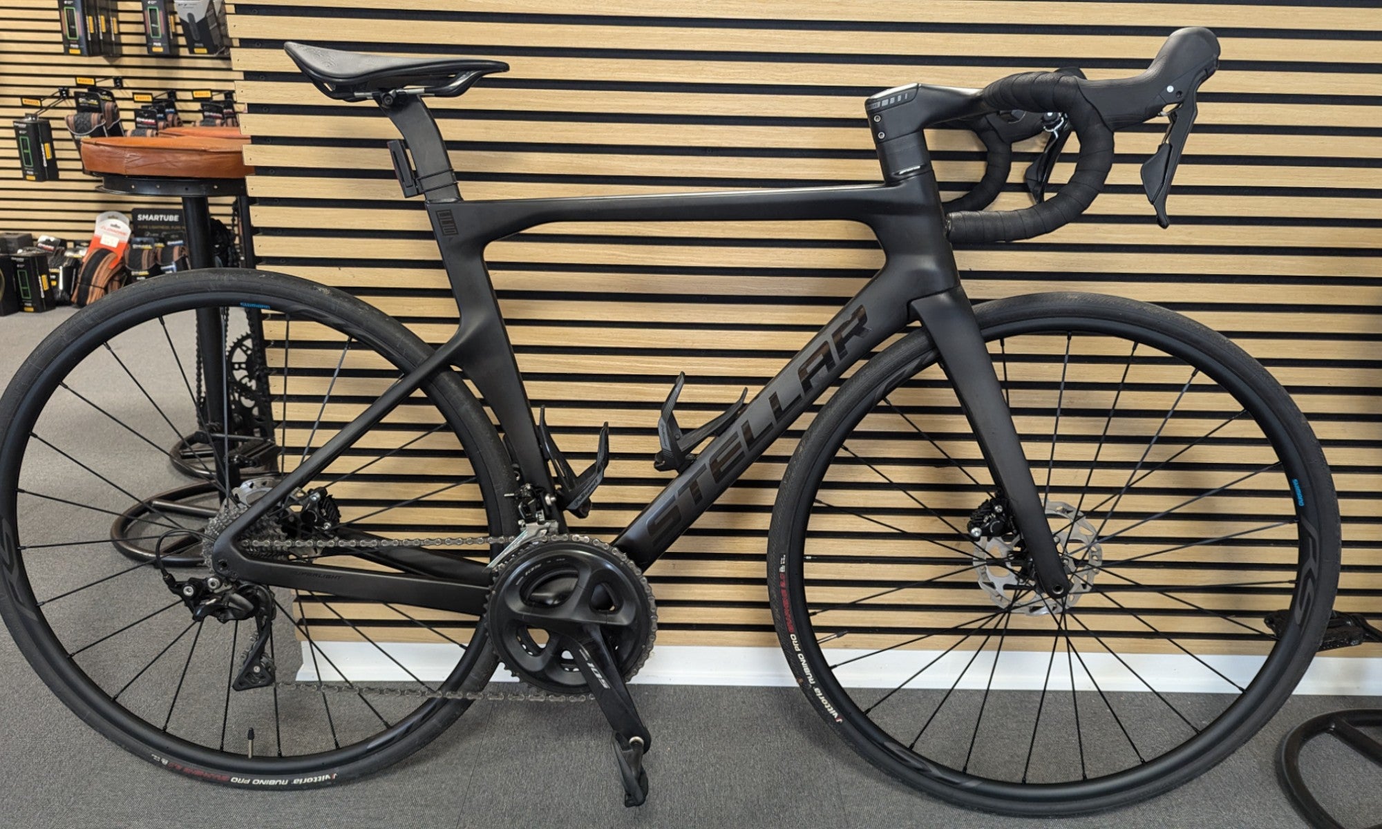 Kundens cykel - Jensen Stellar - før montering af DKBIKE Road 60mm hjul og efter med DKBIKE hjul - wow!